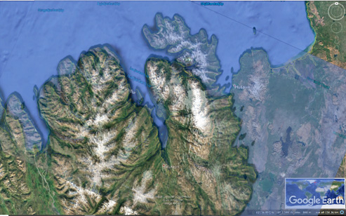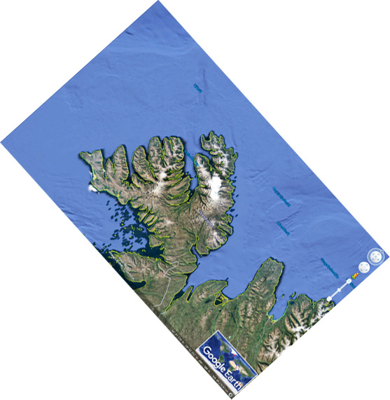 In addition, the Eyjafjörður and Tröllaskagi area can be compared with the West Fjord Peninsula, as by rotating Ísafjörður 24°.