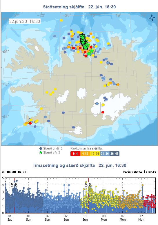 Also, it is interesting to see how the earthquakes spread north of Skagafjörður, the old volcanic zone, which has been volcanically extinct for a few hundred thousand years, but is still seismically and geothermally active.