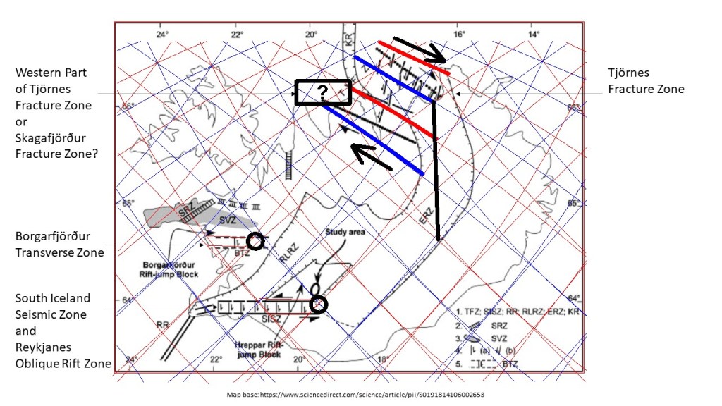This shows how adjustments occur during tectonic drift due to the incosistency between the North Volcanic Zone and Kolbeinsey Ridge. West of KR, there is a weaker, but active part of the Tjörnes Fracture Zone. It covers the same convection roll span from east to west as the Borgarfjörður Transverse Zone. Reykjanes and SISZ cover the same convection rolls as the main part of Tjörnes Fracture Zone found east of the Kolbeinsey Ridge. https://www.sciencedirect.com/science/article/pii/S0191814106002653