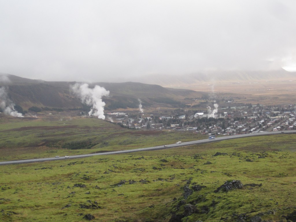 This can be difficult to visualize at first. The lower rolls are actually subducted north of 60.3°N. Hveragerdi has also four layers of small scale convection rolls in between 120 and 410 km depth. The combined effect of these division lines creates these special surroundings above.