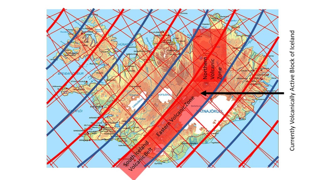 For the last centuries, all volcanic eruptions in Iceland have occurred along a continuous belt. The Eastern Volcanic Zone has the width of 1.5` from east to west.