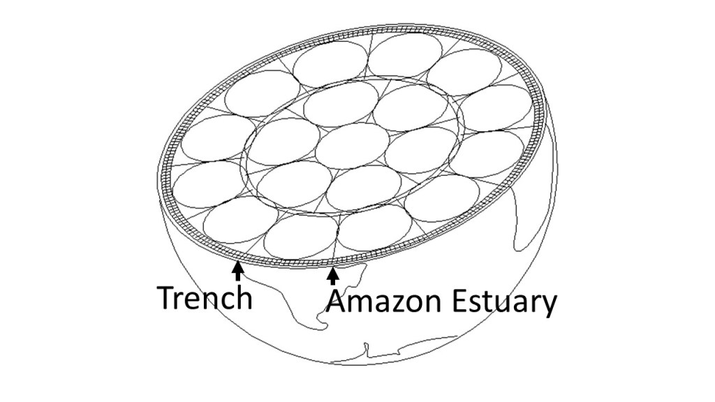 The accurate distribution of land masses, and how it fits to the 1:1 ratio of mantle convection compared with Earth’s layers is very convincing. Then we suddenly realize that tectonic drift must lead to rearrangement of this. But it does not mean we have to run away from this finding, hiding somewhere. That would be silly. Stop for a moment and look at the very special position of S-America, with a regularly shaped trench at one side, and the estuary of the largest river in the world at the other side, 30° apart. These settings are more developed than for Africa, with the coast located 60° east of Amazon Estuary, and the Great Rift Valley found 30° east of the western coast. Drift animations, now readily available on the internet, show that S-America has become relatively stagnant, thereby maintaining the 30° pattern of land extending along the equator line for a while. The situation now is that the wideness of the Atlantic along equator tends to prevail as 60°. One has to study the tectonic drift vectors to realize how that happens. The different aspects of topography; the trench, Amazon Estuary, Mid-Atlantic Ridge, the coast of Western Africa, the Great Rift Valley, makes it easier to understand that the forces underneath create the 30°, 30°, 30°, 30° pattern of S-America (trench to Amazon Estuary 30°), Atlantic Ocean (Amazon – Mid-Atlantic Ridge 30° and Mid-Atlantic Ridge to western coast of Africa 30°) and Africa (western coast to Great Rift Valley 30°). This story is then repeated for the Indian Ocean, but there is not enough space for that here in this little post. But you should study the World Map, and then you will see this.