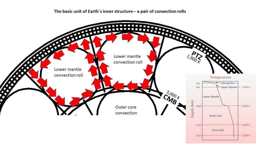 You can look at the basics of Earth’s inner structure in two ways, either mantle plumes or convection cells. The idea about mantle plumes (Morgan 1971: https://www.nature.com/articles/230042a0) is tempting, simply because of the geological settings of Hawaii and some other places. The other way of trying to understand the basics of Earth´s inner structure is looking at the Mid-Ocean Ridges, reasoning that convection rolls are found at each side of them, pulling the ocean floor apart. The starting point seafloor spreading (Harry Hess 1962: https://www.semanticscholar.org/paper/The-history-of-ocean-basins-Hess/acb4469c428cb5ad2ea9d70d2dd9424102f14bae) was clearly of this category.