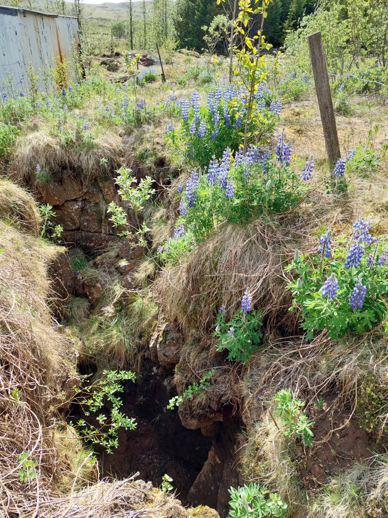 This crack was measured to be 10 meters deep shortly after the large earthquake of Southern Lowlands in Iceland, June 21 in the year 2000, measured to be 6.6 on Richter scale.