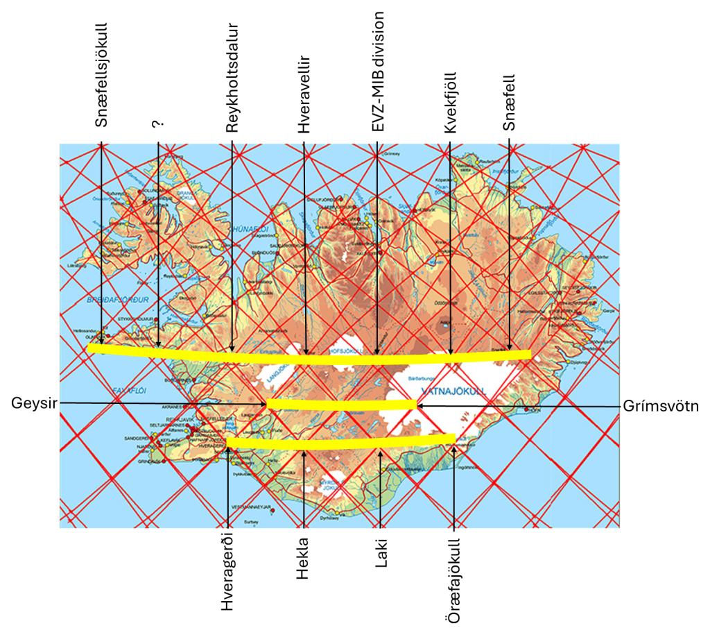 The Mantle Convection Rolls Model incorporates these constraints explicitly. The curved division lines defined by the governing equation represent surface projections of rolls whose dimensions remain constant while their axes adjust to both rotation and curvature. A notable consequence is the emergence of a characteristic latitude near 32°, where these competing influences produce roll axes oriented close to north–south. At this latitude, correspondence between calculated roll boundaries and mapped tectonic features is particularly clear.