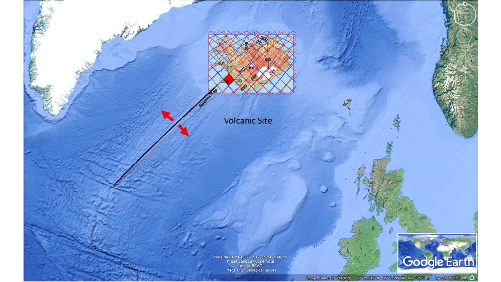 TThis map can be explained further: 1) Blue frame indicates the base of the tuya Fagradalsfjall. The sides are oriented N44°E and N44°W, because of the convection rolls underneath shaping the surface in various ways. 2) Thick black lines indicate the earthquake zone, connecting the South Iceland Seismic Zone and the Reykjanes Ridge. The middle line is in fact the division between the two tectonic plates of N-America and Eurasia. 3) Thinner NS oriented lines indicate location of earthquake faults within the zone. They have been mapped by many scientists for the last decades, for instance Páll Einarsson and Vigfús Eyjólfsson who I have referred to in other posts. The general layout here is extrapolated from their findings. 4) The red line shows the approximate location of the dike. It has the same orientation as the slopes of Fagradalsfjall, which in turn has the same orientation as the Reykjanes polygon of the convection rolls model. 5) The red ellipse indicates the sites of eruption. The erupting locations coincide with crossings between earthquake faults and the dike, as the magma can most easily make its way to the surface through the earthquake faults.