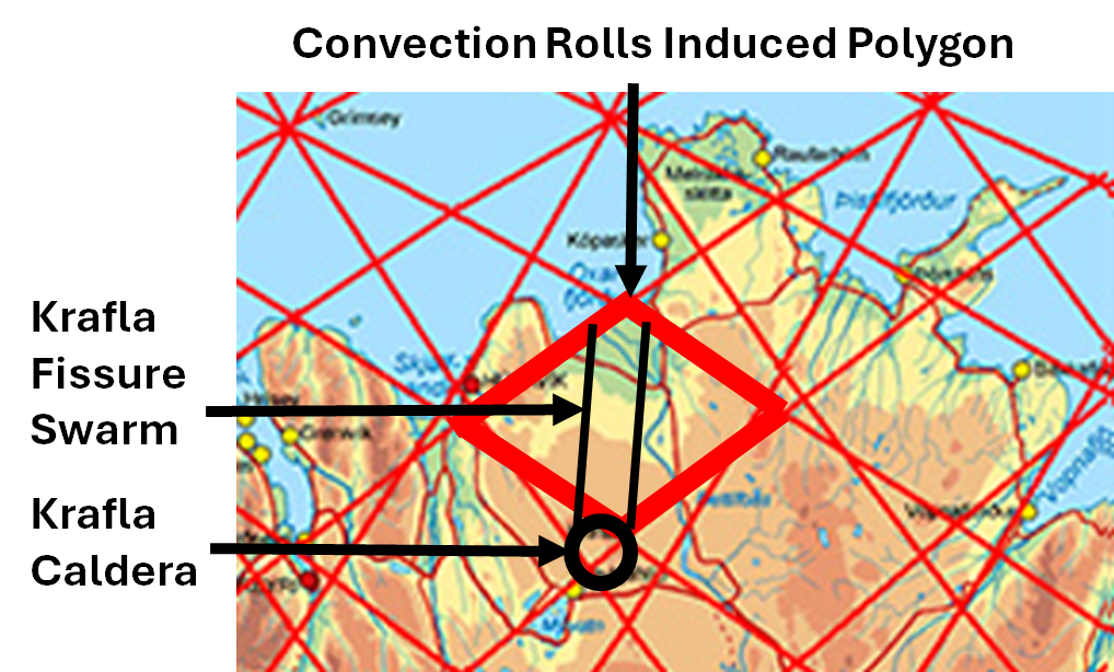 April first, 2025, the dyke responsible for the recent eruptions got active again. New intrusion of magma resulted in an extension to the north-east. It was a surprise, but the alignment can be explained according to the framework of convection rolls underneath.