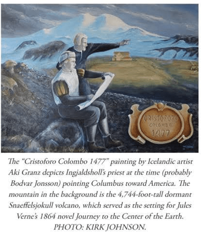 On the other side of the glacier, this painting shows Columbus in Iceland:
