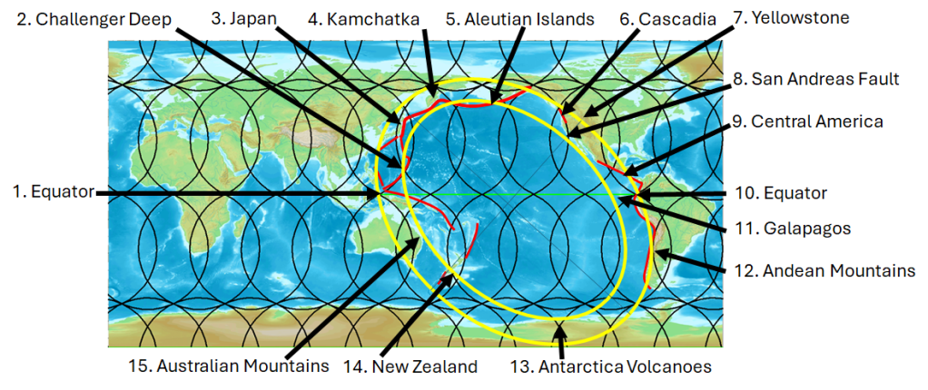 If such a system can be identified beneath Iceland, it is logical to extend the same reasoning to other parts of the world. Iceland is not unique in experiencing volcanism or tectonic spreading. It is simply an especially visible case because the ridge rises above sea level there. The same processes occur all along the Mid-Atlantic Ridge, hidden under the ocean. Likewise, the arcs and trenches of the Pacific reveal similar spacing and repetition when studied carefully.