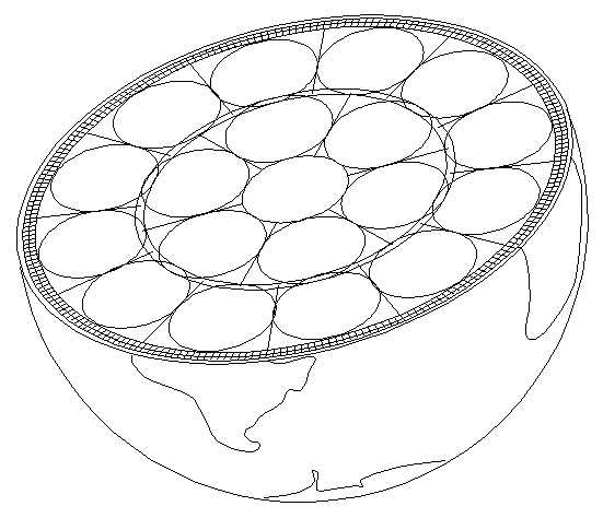 where x denotes latitude, y longitude, and Cₙ the longitudinal centre of each roll along 32° latitude. The centres are spaced at regular 1.5° intervals, yielding a total of 240 rolls encircling the globe. The constant 35.34 corresponds to the squared radius of the projected roll section in degrees and defines a family of curved division lines that can be constructed globally.